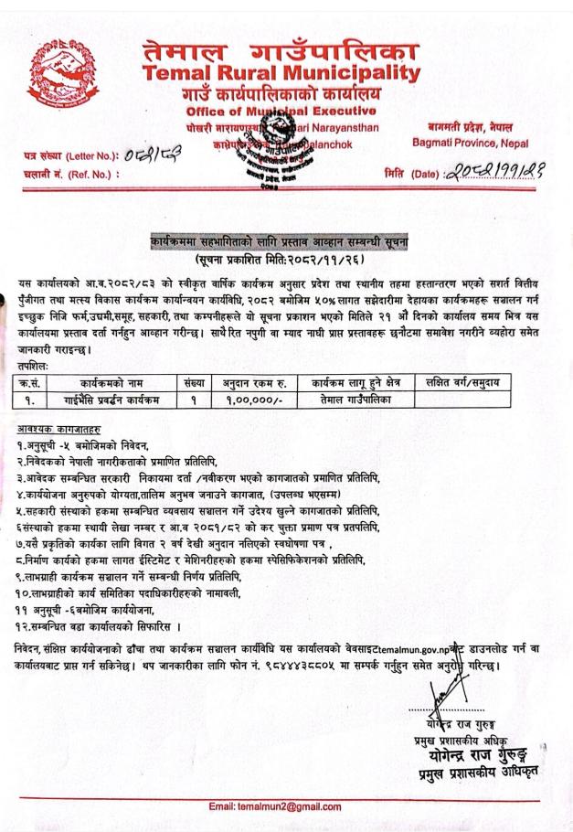 कार्यक्रममा सहभागिताको लागि प्रस्ताव आव्हान सूचना ।