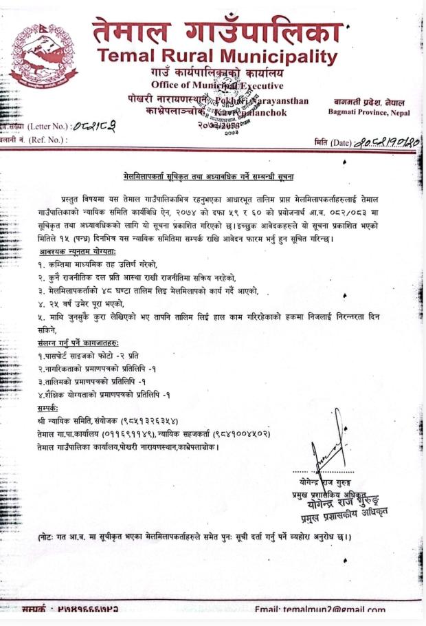 Home » मेलमिलापकर्ता सूचिकृत तथा अध्यावधिक गर्ने सम्बन्धी सूचना ।