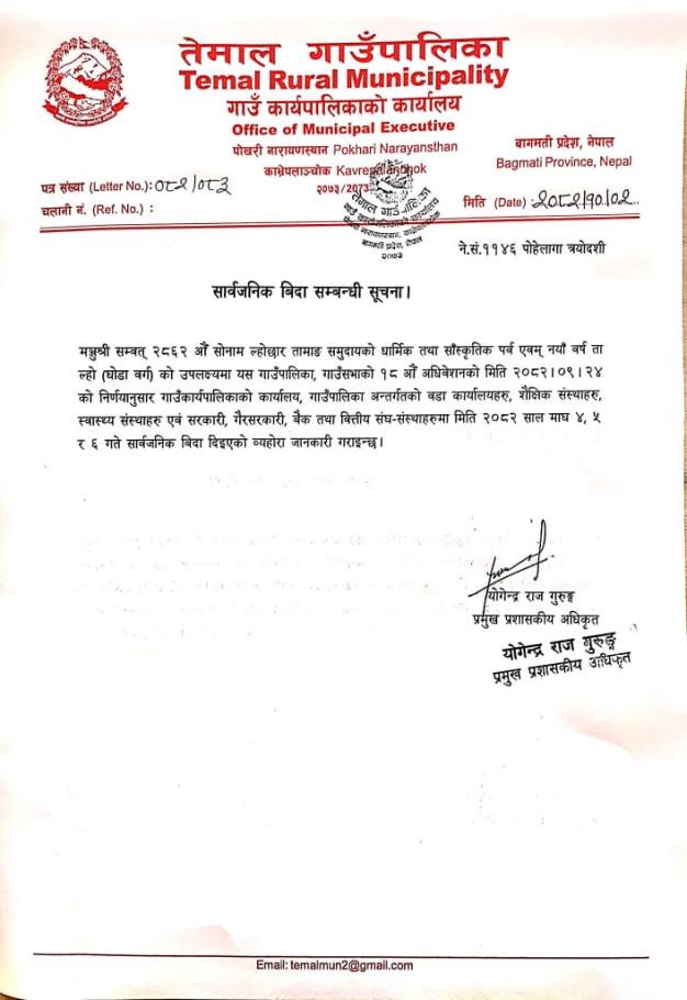 सार्वजनिक विदा सम्बन्धीसूचना ।