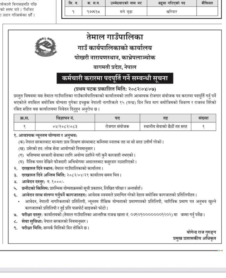 तेमाल गाउँपालिकाको आयव्यवको विवरण सार्वजनिक गरिएको सम्बन्धमा ।